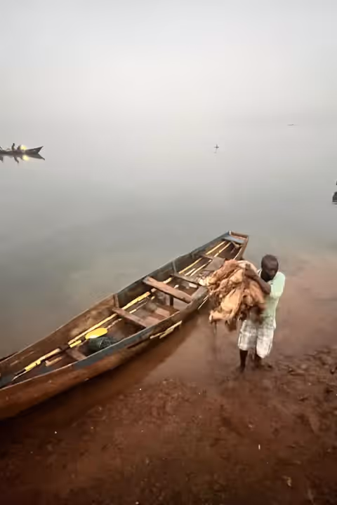 Though we didn't catch our own that day, we purchased a fresh Nile Perch from a passing boat. A massive, gleaming silver fish that barely fit on our boat's floorboards. We roasted it over an open flame as the sun dipped below the horizon—the rich, buttery grease dripping into the fire.